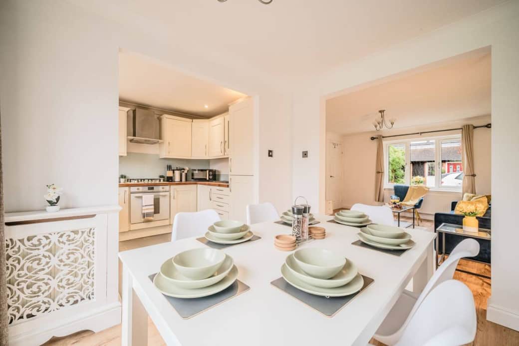 A comfortable 2-bedroom home in Maidenbower, ideal for contractors, relocations, or business travel. The house offers a cosy living room with Smart TV, dining room, fully equipped kitchen, modern bathroom, private back garden and parking. Centrally located with easy access to Gatwick Airport (10–12 mins), Three Bridges Station, local shops and major routes. A convenient home-from-home for short or long stays.
